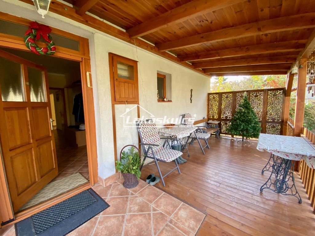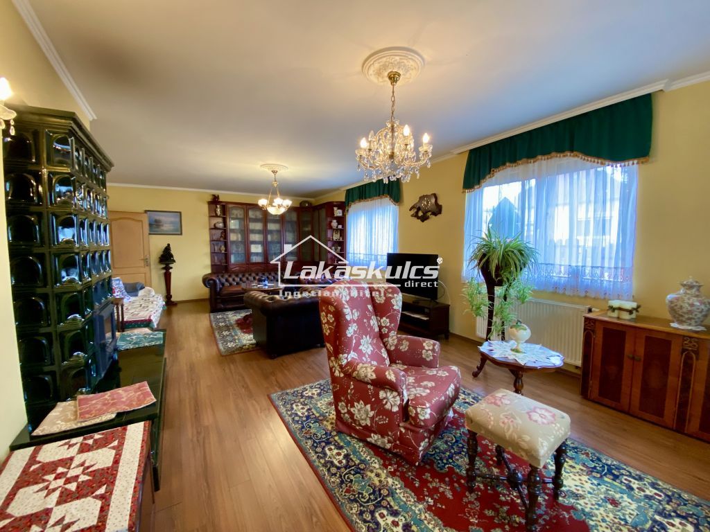 A földszinten hatalmas nappali, étkező, konyha, kádas fürdőszoba wc-vel és bidével, vendég wc, tágas előszoba. Az étkező és nappali is méreténél fogva tökéletesen alkalmas nagyobb baráti összejövetelek megtartására is. Az étkezőből hangulatos, zárt teraszra léphetünk ki. A nappali és az étkező közös falába egy hatalmas gyönyörű cserépkályhát építetettek, mely téli estéken nemcsak meleget áraszt, hanem, nagyon hangulatos is.