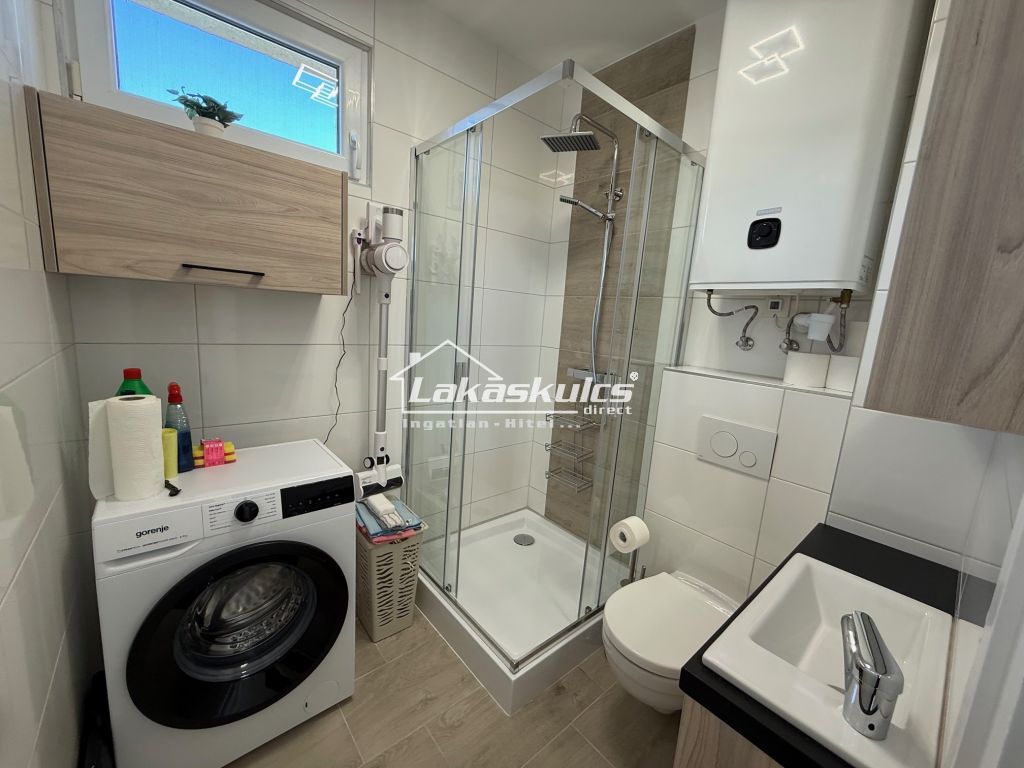 - Zuhanyzós fürdőszoba, mosógéppel
