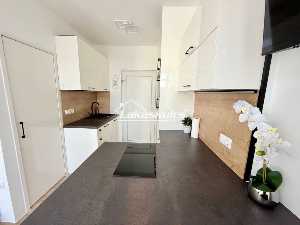 27 m²-es+ 5 m2 erkélyes apartmanlakás. Az ingatlan az 1. emeleten található. Az erkélyr zöld parkra néz.